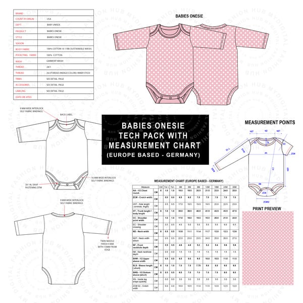 Babies Onesie Tech Pack | Editable Fashion Specification Sheet