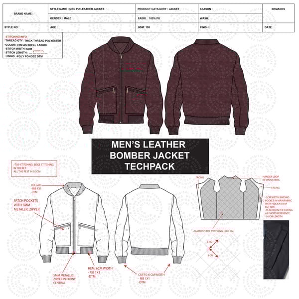 Men’s Nylon Jacket Tech Pack | Editable Fashion Specification Sheet