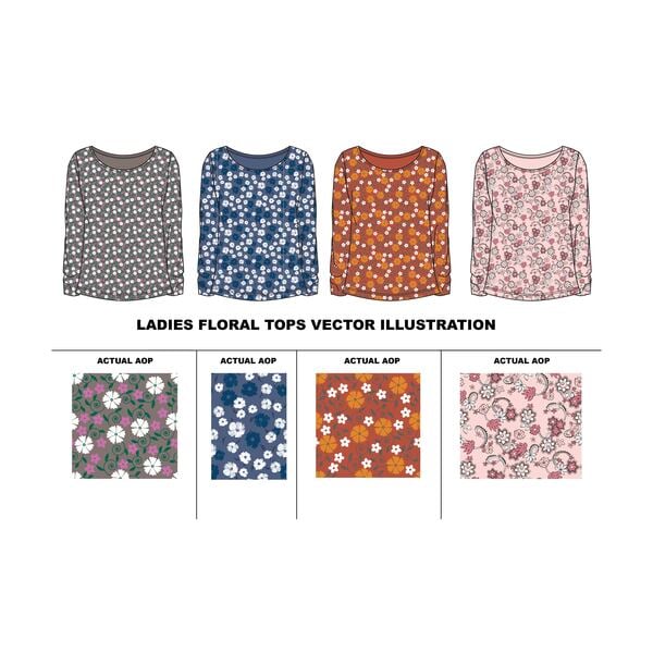 Ladies Floral Tops & Blouses - Vector Illustration Collection