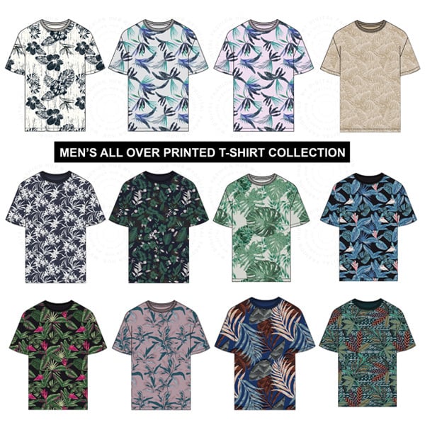 Men’s Tropical Summer All Over Printed T-Shirt Vector