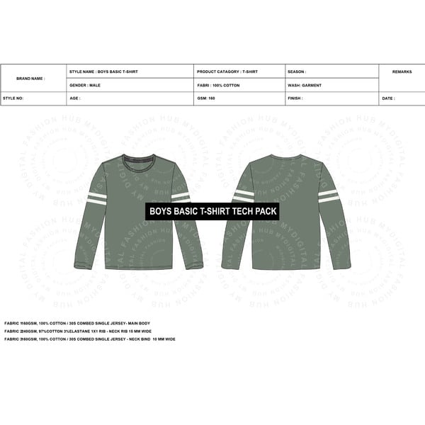 Boys Basic T-Shirt Tech Pack | European Sizing (EU) | Ready for Manufacturing