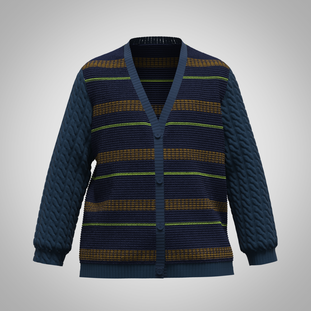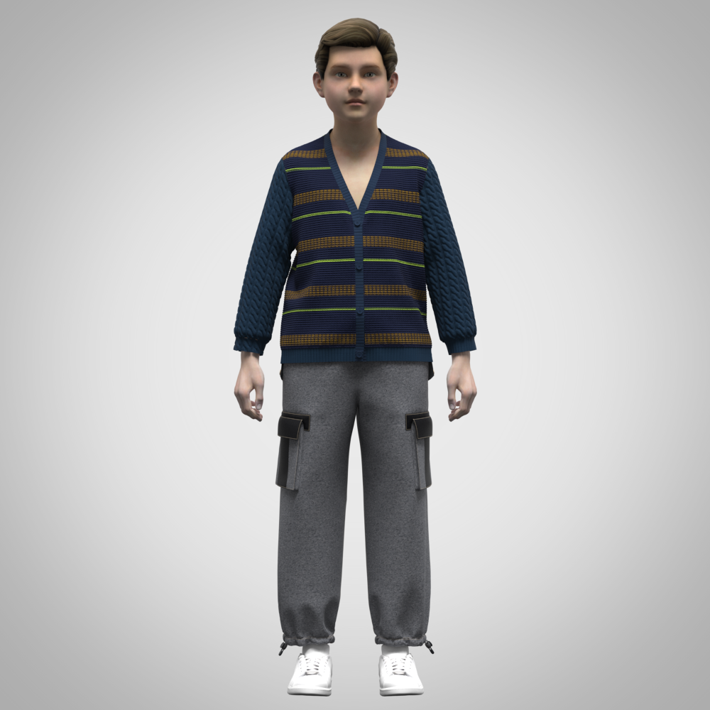 Download this professional-quality 3D Boys Cardigan Sweater for free — a fully editable and realistic digital garment designed for fashion designers, 3D artists, apparel developers, and virtual fashion creators. Built with precision in CLO Standalone and Marvelous Designer, this model offers both style accuracy and performance efficiency for your digital fashion projects.