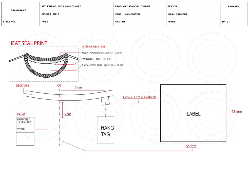 • Label & Tag Placement: Precise instructions for placing main brand labels, care labels, and any hang tags.