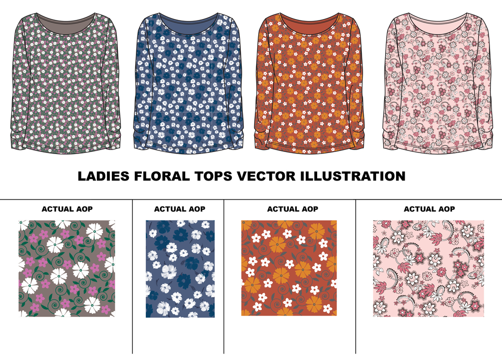 Ladies Floral Tops & Blouses - Vector Illustration Collection