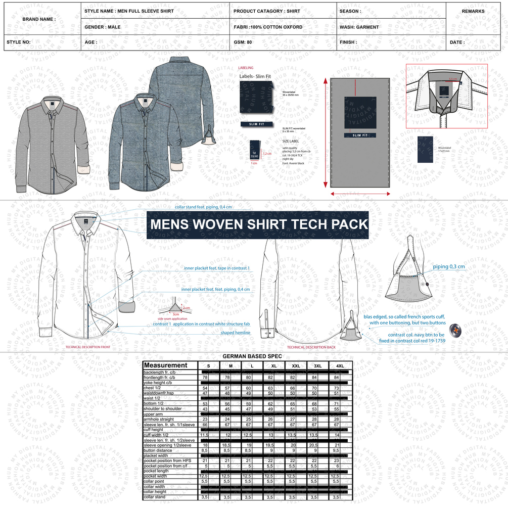Streamline your shirt production with this professional Men’s Shirt Tech Pack, designed for fashion brands, clothing manufacturers, and designers.