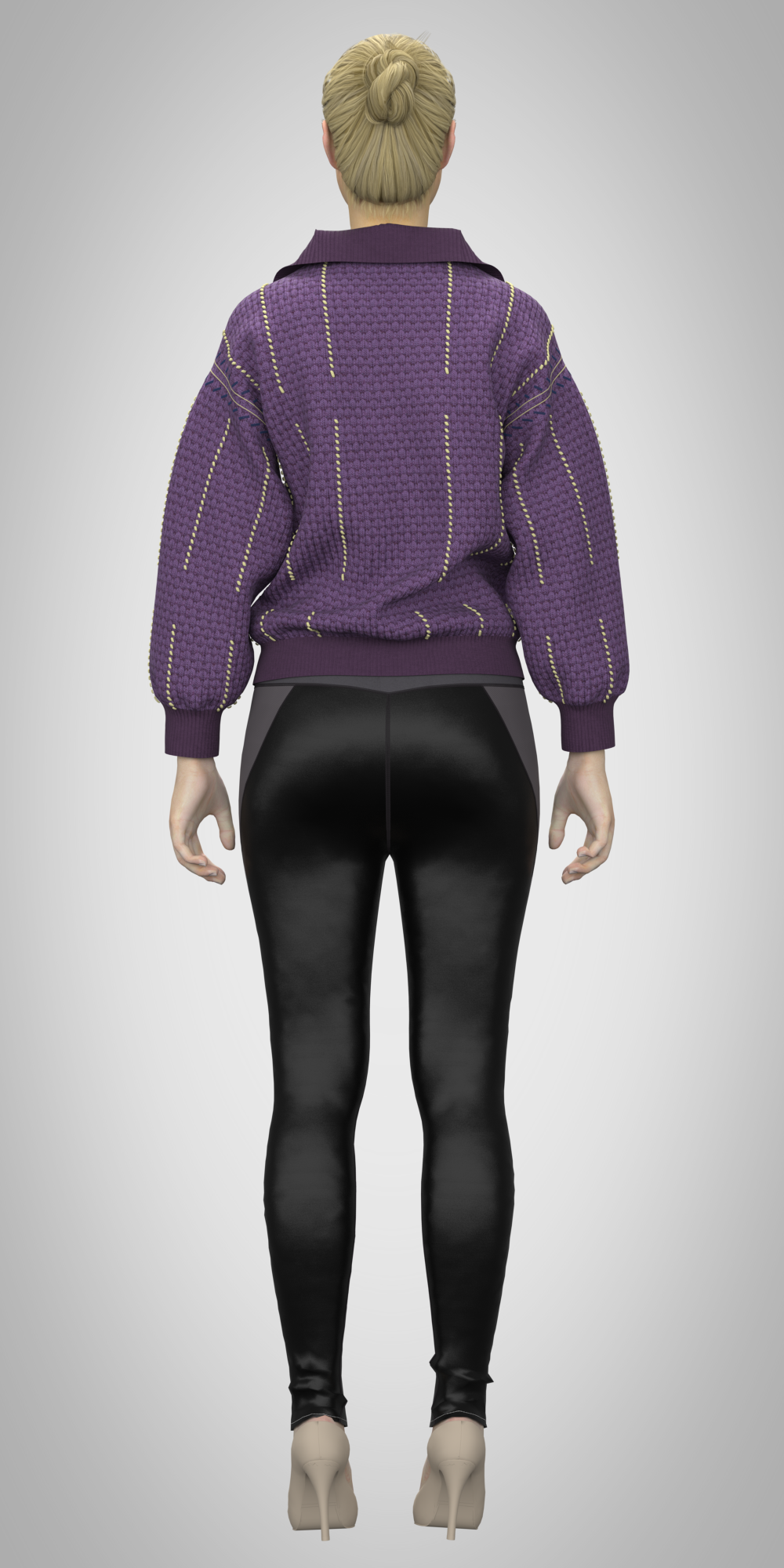 A clean and modern 3D women’s half-zip sweatshirt ideal for digital fashion design, animation, and metaverse styling.